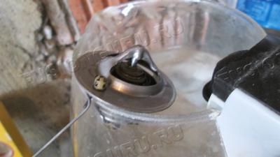 Решил проверить снятый термостат - закипятил электрочайник и засунул термостат в кипяток. Он открылся, но фото видно на сколько - я просто не в курсе, насколько широко он должен открываться.