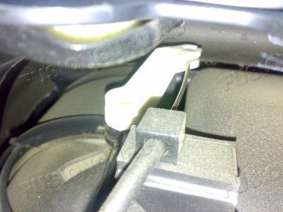 Далее включить зажигание, включить климат на 2 уровень оборотов и включить подачу забортного воздуха, отключив рециркуляцию - это надо для того, чтобы можно было разобрать узел привода белых рычагов. Пальцами находим защелки крепления тросов и вынимаем все это дело. Выключаем зажигание. Конец троса должен втянуться в оболочку. Откладываем рычаг в сторону и откручиваем 5 винтов крепления заслонки - это будет с торца вентилятора. Смотреть с места пассажира снизу в направлении середины лобового стекла и чуть вперед. Вентилятор крепится тремя из этих пяти винтов, поэтому вынимается вместе с заслонкой. Только как-то не сразу он вынимается... Может, немного вращать надо или расшатывать... Сразу надо отсоединить разъем питания вентилятора, разъем с простой защелкой, но тугой довольно.