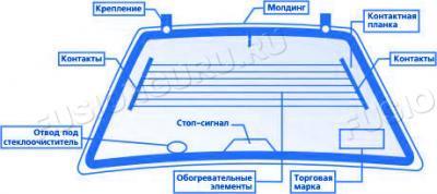 Заднее стекло имеет следующие элементы:
