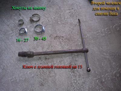Чтобы снять и почистить топливный бак вам понадобятся: